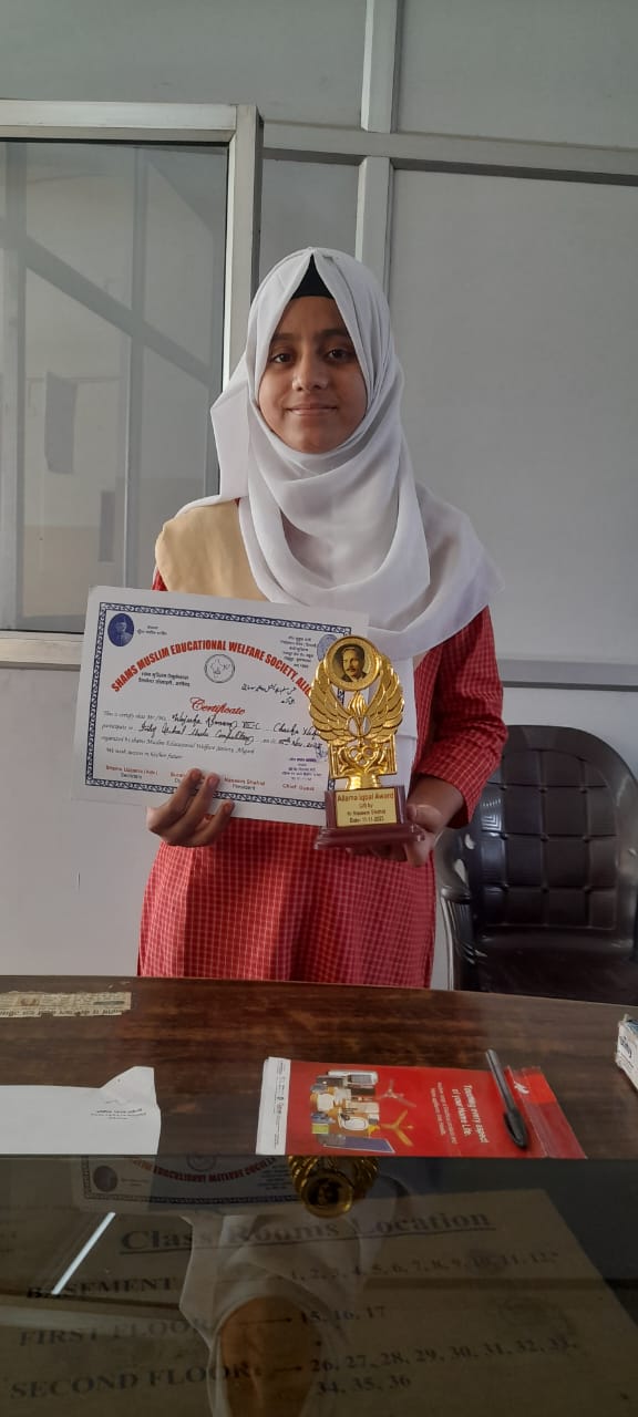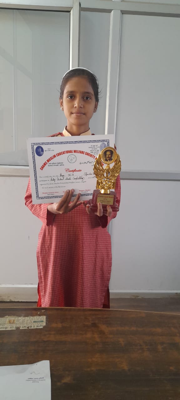 Wajiha Khanam from Class 7 - C got the Prize in Udru Competition